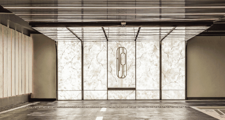 电视布景墙选用带有东方意蕴的万里河山石材。